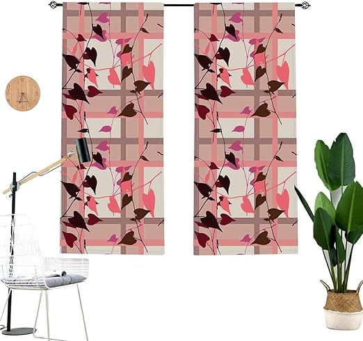 Amazon Com Coral Blackout Curtains Heart Shaped Swirling Leaves Over Striped Square Lines Urban Life Graphic Living Room Bedroom Window Drapes 2 Panel Set W29 X L63 Each Panel Home Kitchen