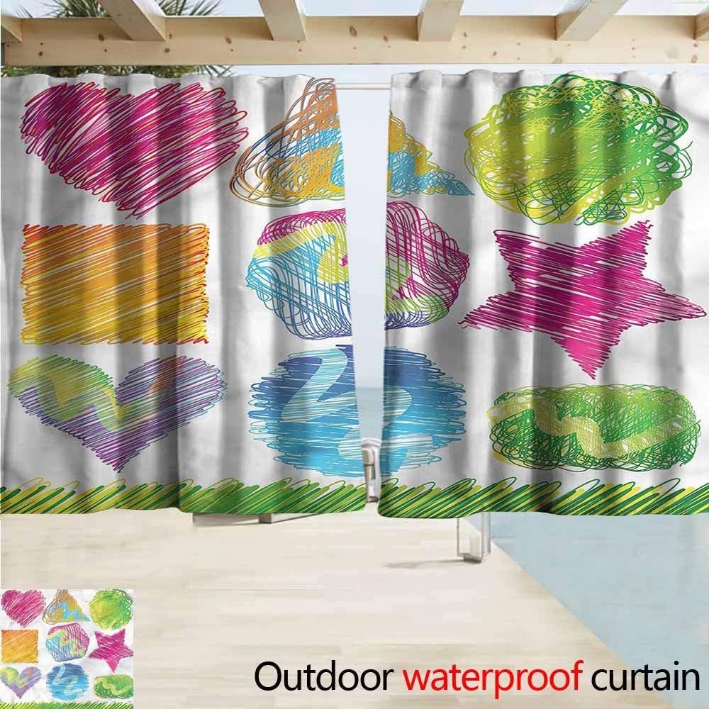 Amazon Com Marymunger Thermal Insulated Blackout Curtains Doodle Heart Square Circle Triangle Drapes For Outdoor Decor W55x39l Inches Garden Outdoor