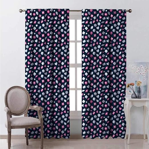 Amazon Com Unpremoon Blackout Curtain Panels Diamonds Round Marquise Square And Heart Shaped Crystals With Ruby Arrangement Dark Blue Pink Pearl W63 X L72 Thermal Insulated Draperies Home Kitchen