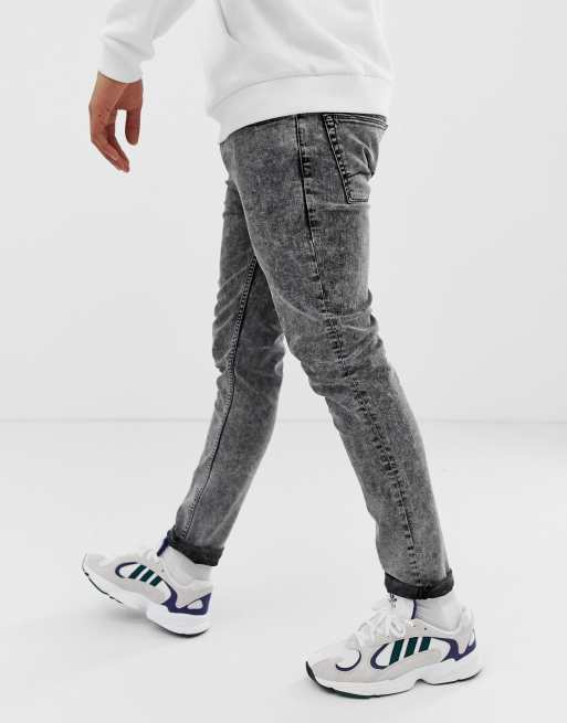 Asos Design Skinny Jeans In Acid Wash Black Asos