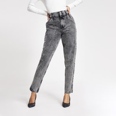 Black Acid Wash High Rise Tapered Jeans River Island