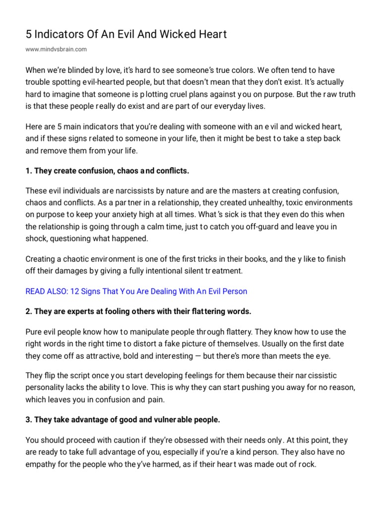 5 Indicators Of An Evil And Wicked Heart Behavioural Sciences
