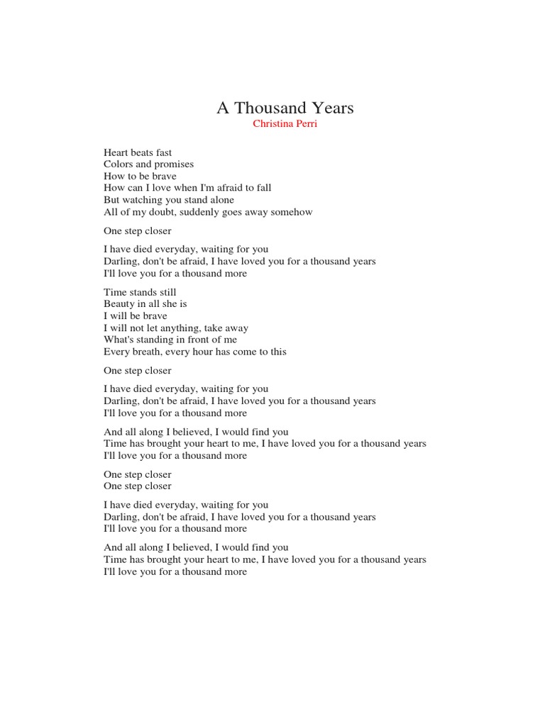 A Thousand Years Christina Perri Great Song Lyrics Thousand