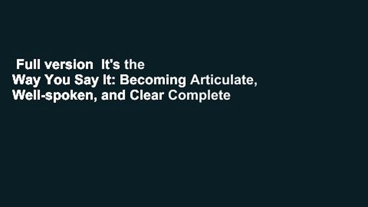 Full Version It S The Way You Say It Becoming Articulate Well